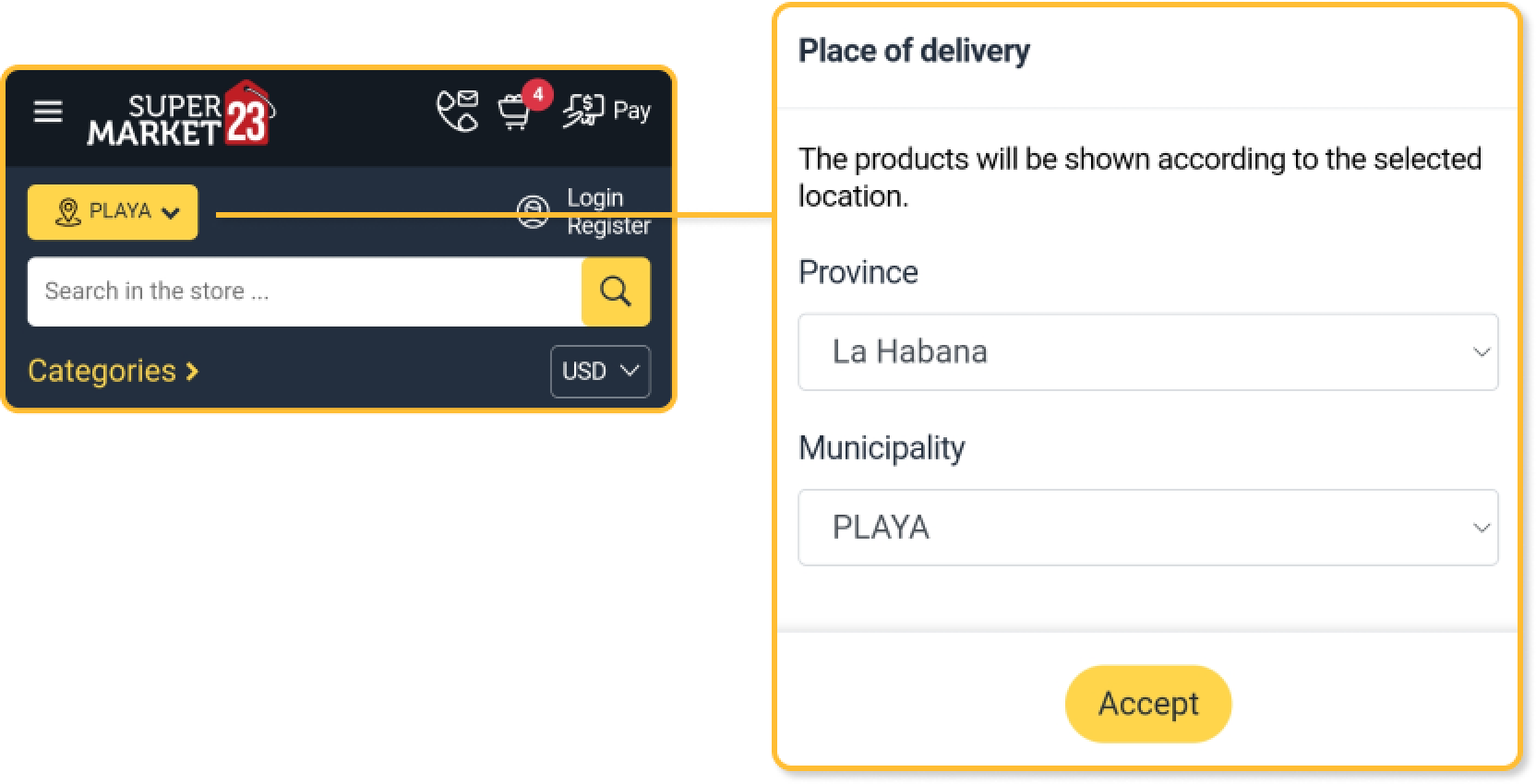 - Declare your recipient’s province and municipality on the store’s homepage.