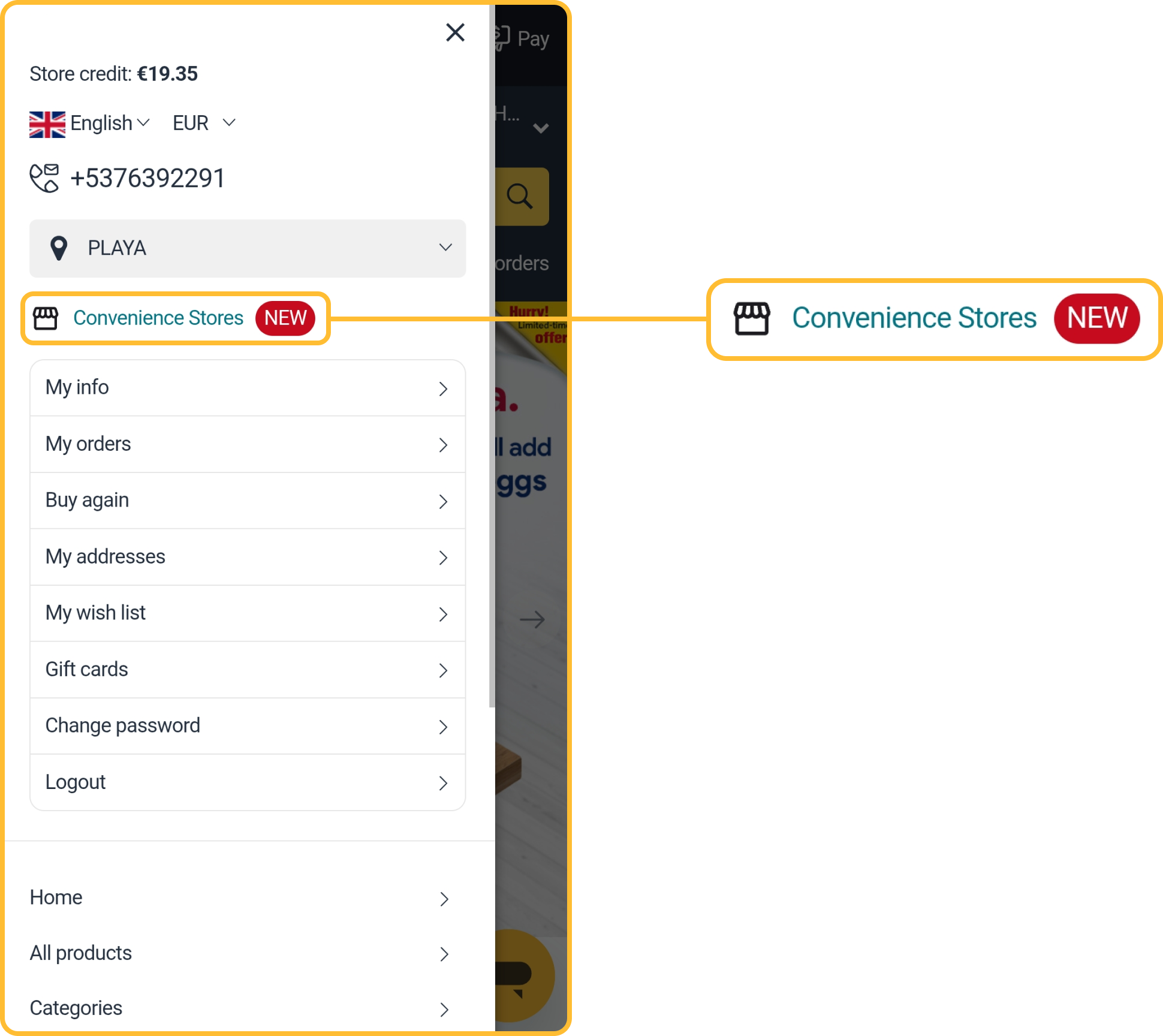 Only products from Convenience Stores available in the selected area can be delivered via the Express Delivery service.
