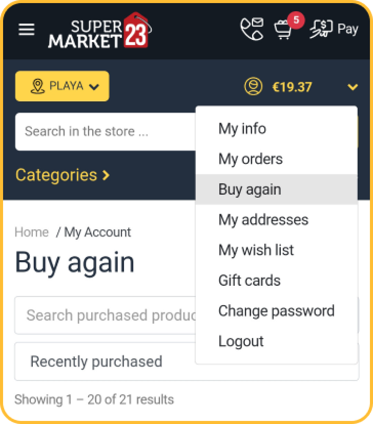 - In this section, you will see a history of the products you have previously purchased on Supermarket23.