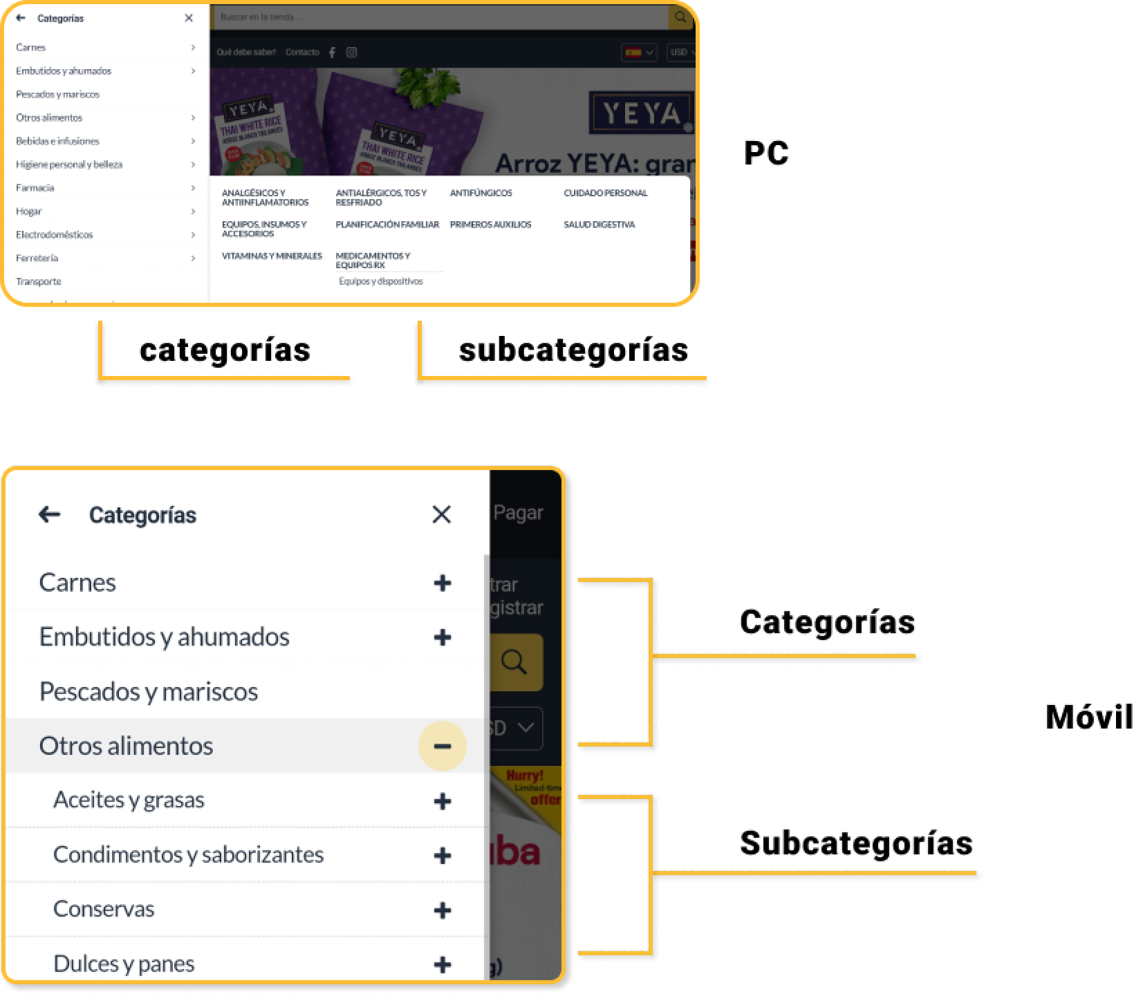 - Se desplegará una lista con todas las categorías de productos disponibles en la tienda.