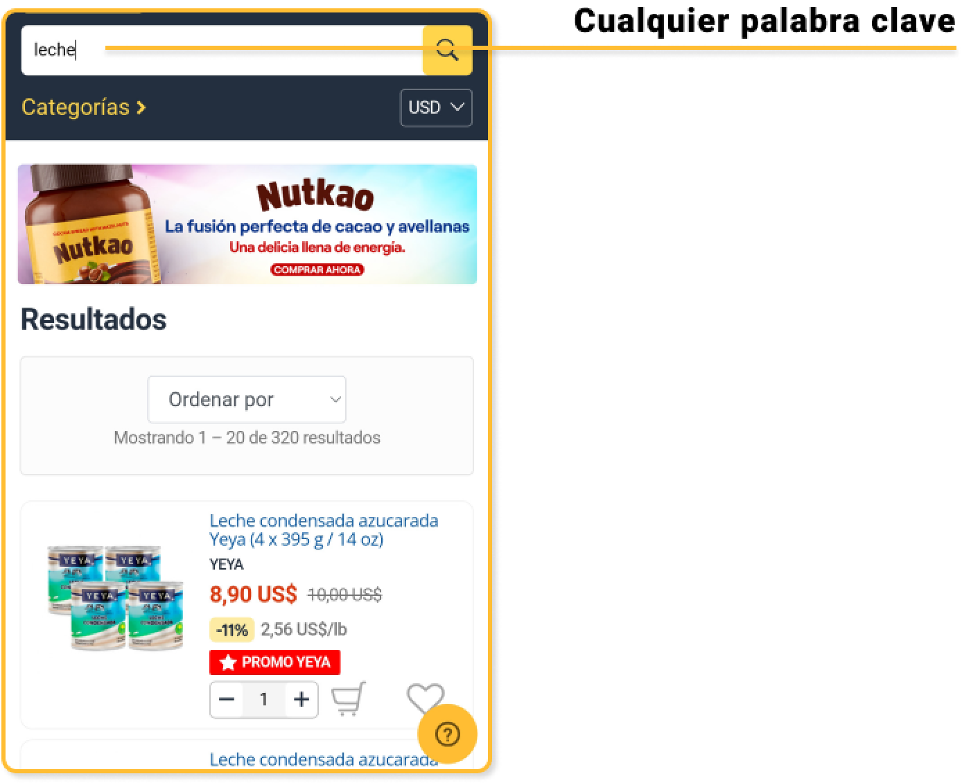 - Si ya tiene en mente un producto específico, simplemente escriba su nombre en la barra de búsqueda.