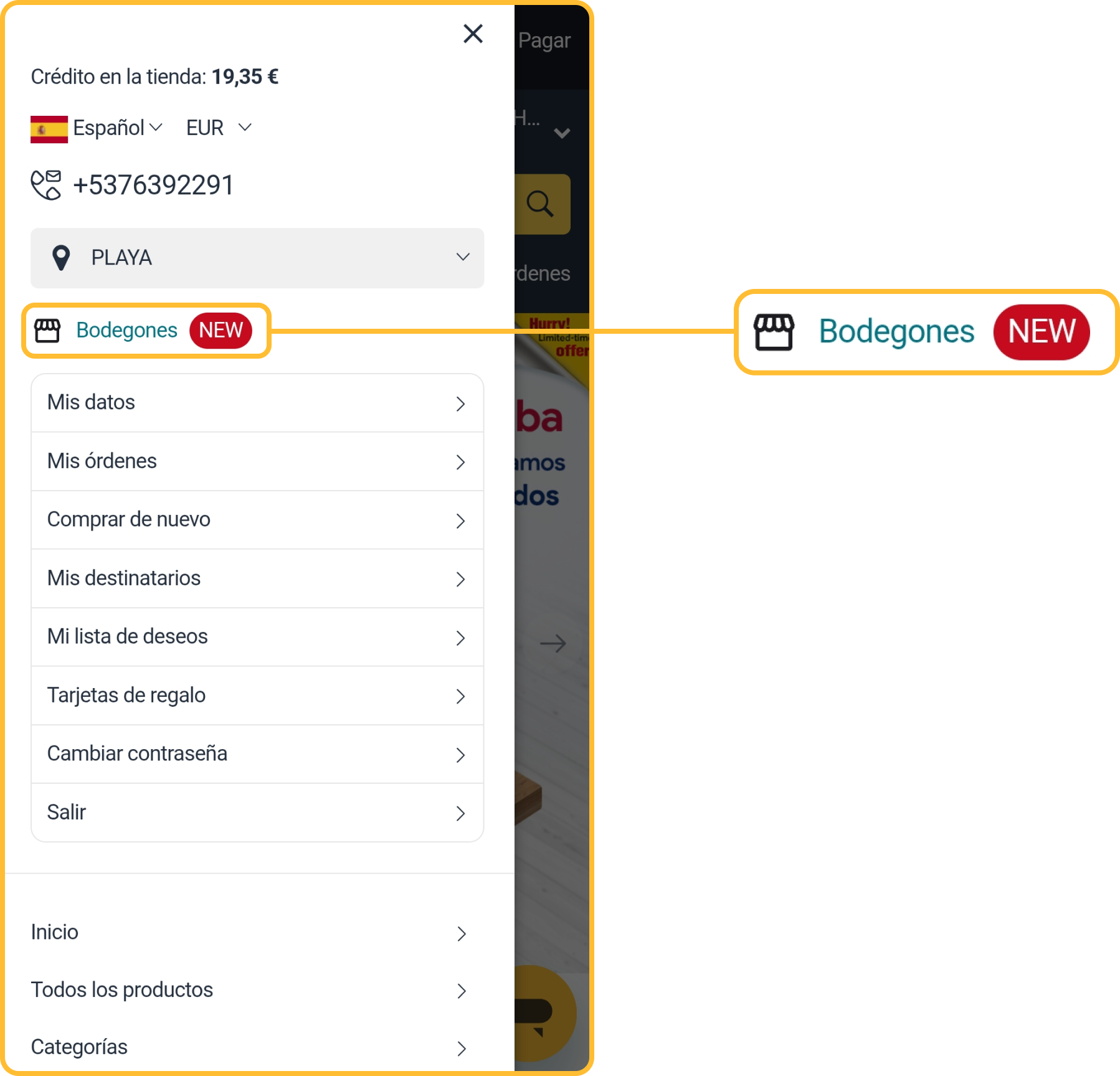 - Acceda al menú superior lateral izquierdo de la tienda.