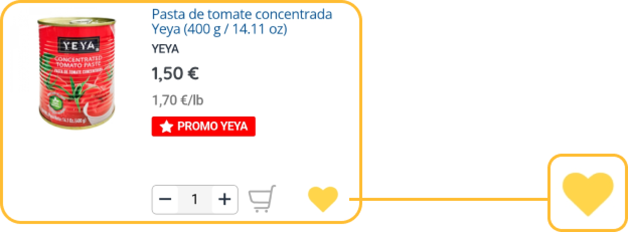 - Al navegar por la tienda, verá un ícono de corazón junto a cada producto.